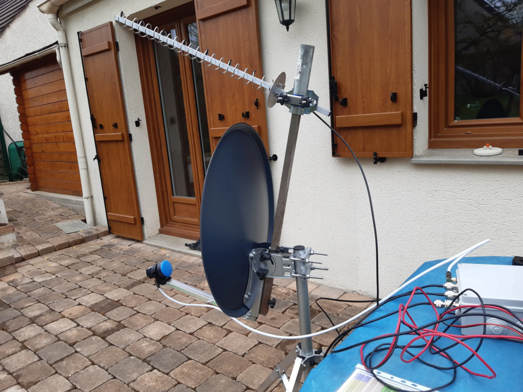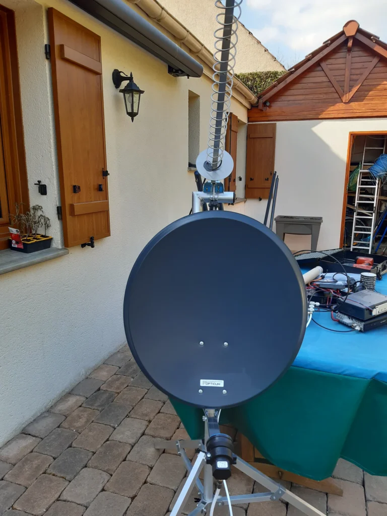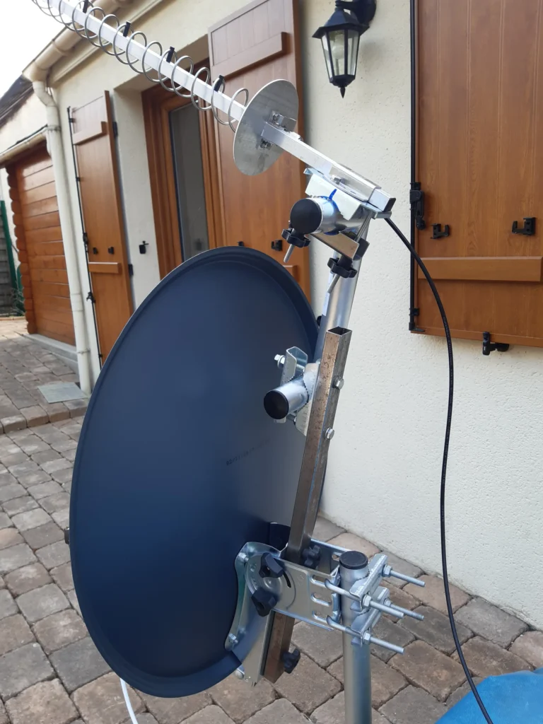 - Une parabole de 60 cm et une antenne Helix 13 = la réception est excellente et la transmission idem