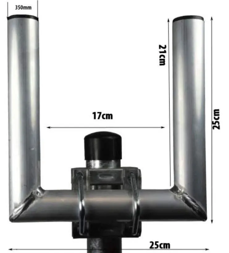 Rajout d un U en alu de 25cm Ø 35mm prévu pour la pose de 2 antennes , en lieu et place d’un bout de tube à l’arrière de la parabole pour supporter l’antenne Helix 13 , ( en photo ci dessous )